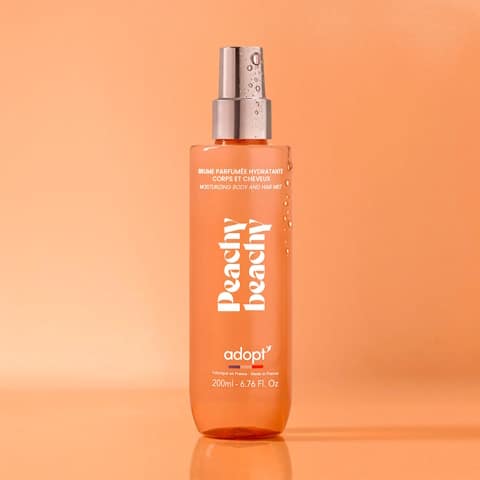 Adopt Hair and Body Mist Peachy Beachy is een hydraterende mist voor lichaam en haar waar zachtheid en frisheid elkaar ontmoeten. De geur van sappige perzik met een frisse bloemige twist geeft een lichte spirit voor een vrolijk humeur. Dé perfecte oppepper!
