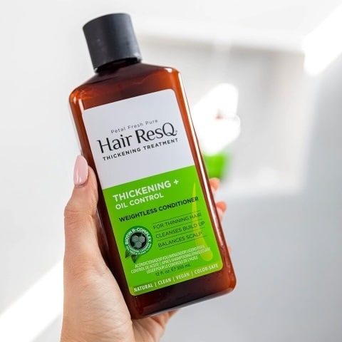 Petal Fresh Pure Hair ResQ Conditioner Thickening Original maakt gebruik van de kracht van cafeïne uit groene thee voor dikkere, vollere en meer volumineuze lokken van wortel tot punt. Pepermunt- en rozemarijn-extracten verwijderen onzuiverheden van de hoofdhuid met als resultaat schone, glanzende lokken!