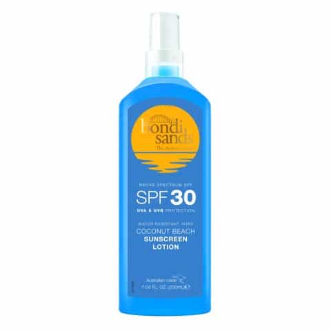 Bondi Sands Sunscreen Lotion SPF30 Spray is niet vet, waterbestendig gedurende vier uur en laat de huid gehydrateerd en beschermd aanvoelen zodat zodat men vol vertrouwen de zon tegemoet kan treden.